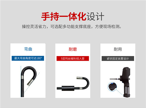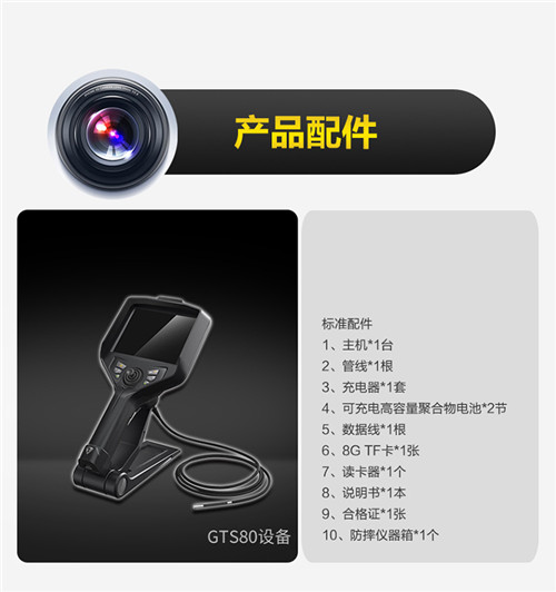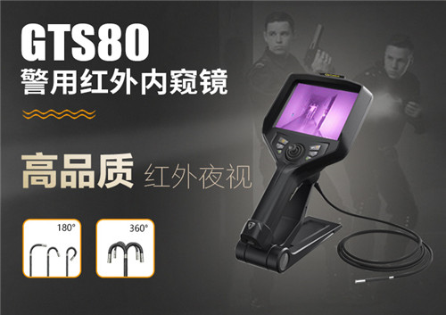 GTS80警用紅外內窺鏡可實現(xiàn)狹小、黑暗、隱蔽空間的圖像、視頻信息偵查和采集;產品模塊化設計,可更換管線和顯示屏,小巧便攜;360°全向轉向,最大彎曲角度≥190°,阻尼式定位設計,精準的探頭鎖定技術,使檢測更準確、無死角;可通過 WiFi&RF 無線圖傳,實現(xiàn)手機/平板等終端無線同步顯示;獨創(chuàng)雙組電池續(xù)航設計,工作時間≥8 小時,實時電量顯示;兼容 1.8mm-6mm 多種規(guī)格管線,適用多種場景;大功率后置紅外光源系統(tǒng),采用精密耦合技術,鏡頭部分采用多模透鏡組以及納米鍍膜工藝,實現(xiàn)了 18+米的超遠夜視距離;紅外線光源和普通白光雙光源一體化設計,支持一鍵快速切換。
