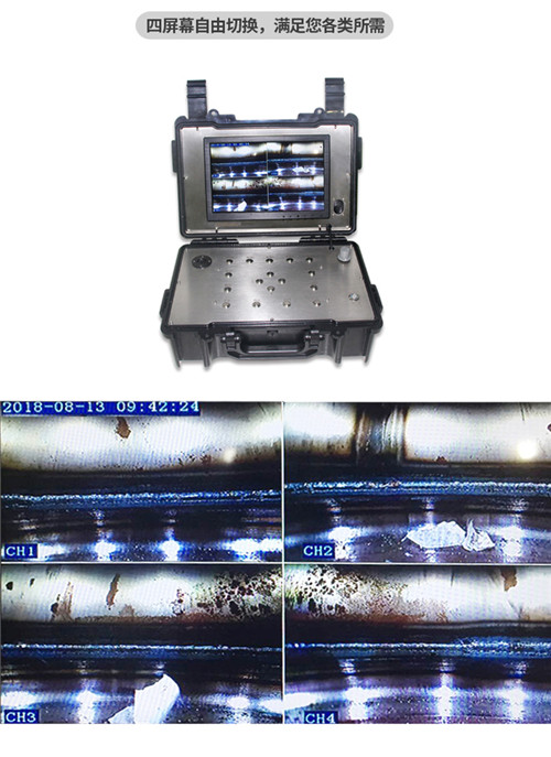 簡介——GT-CX4工業(yè)容器內(nèi)窺鏡可實現(xiàn)一屏四用的檢測效果,分屏檢測更加精細、全面,管道/容器內(nèi)部360°檢測無死角。自帶可調(diào)節(jié)