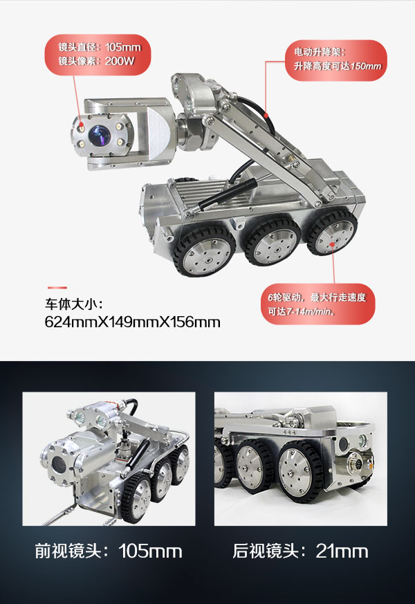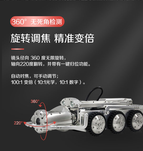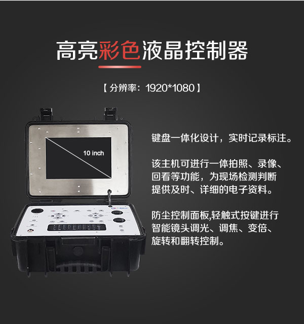 在檢測過程中,控制系統可實時顯示錄制鏡頭回傳的畫面以及爬行器的狀態信息。前置高清變倍攝像頭,支持自動對焦,200萬像素高清實時傳輸;IP68級超強防水,可用于10米水深,氣密保護,內置氣壓傳感器,有壓力指示燈。支持生成檢測報告,通過管道檢測信息管理系統,對檢測數據進行采集、上傳、存儲和分析等。