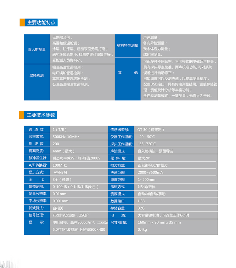 簡介——可對各種板材和各種加工零件作測量,也可以對生產設備中各種管道和壓力容器進行監測,監測它們在使用過程中受腐蝕后的減薄程度。